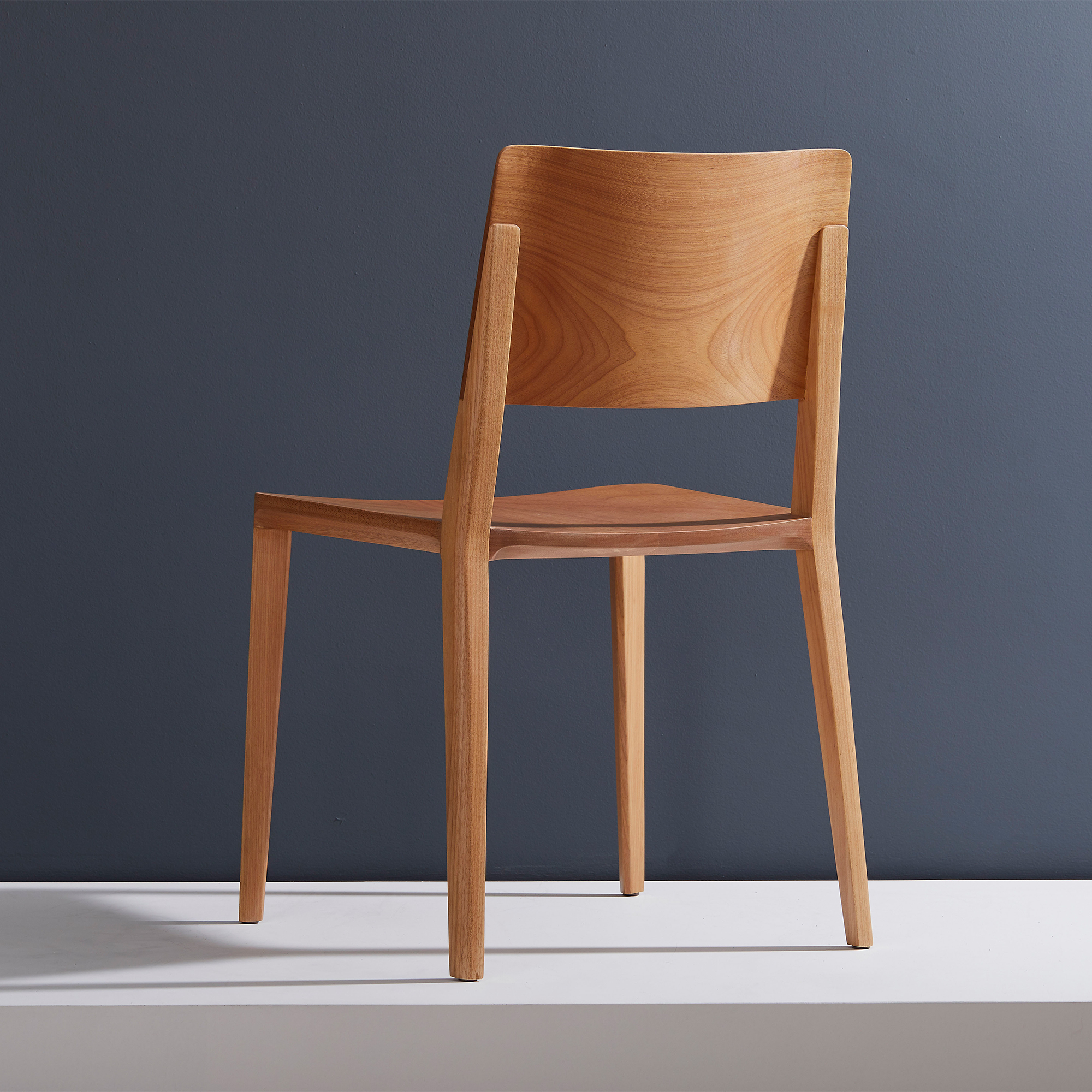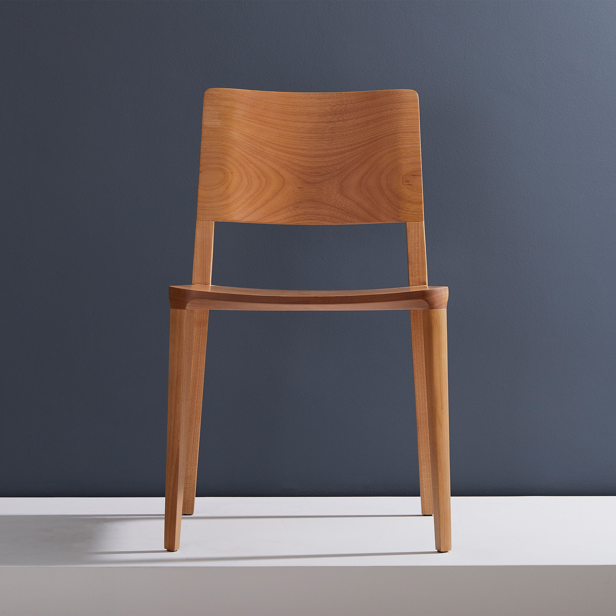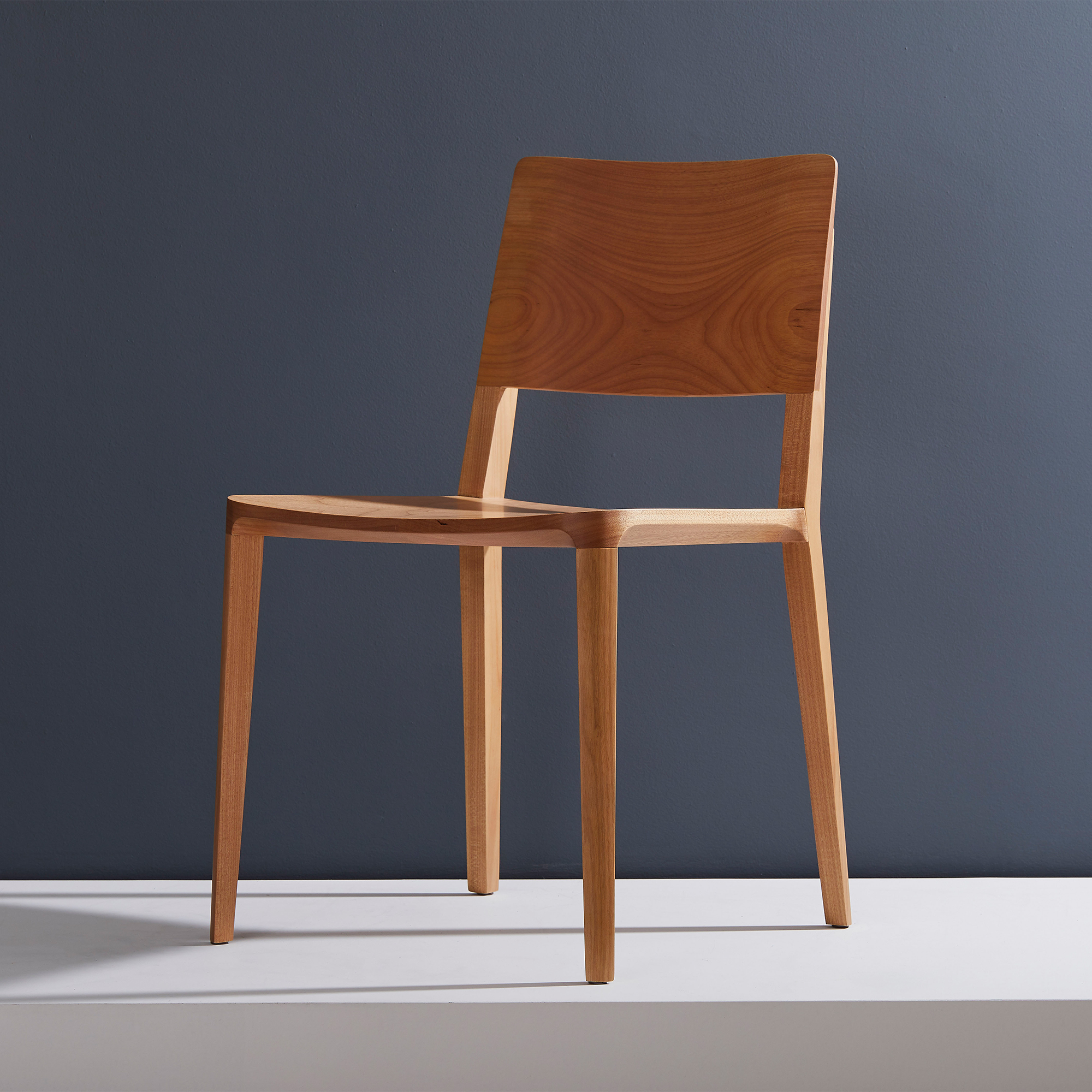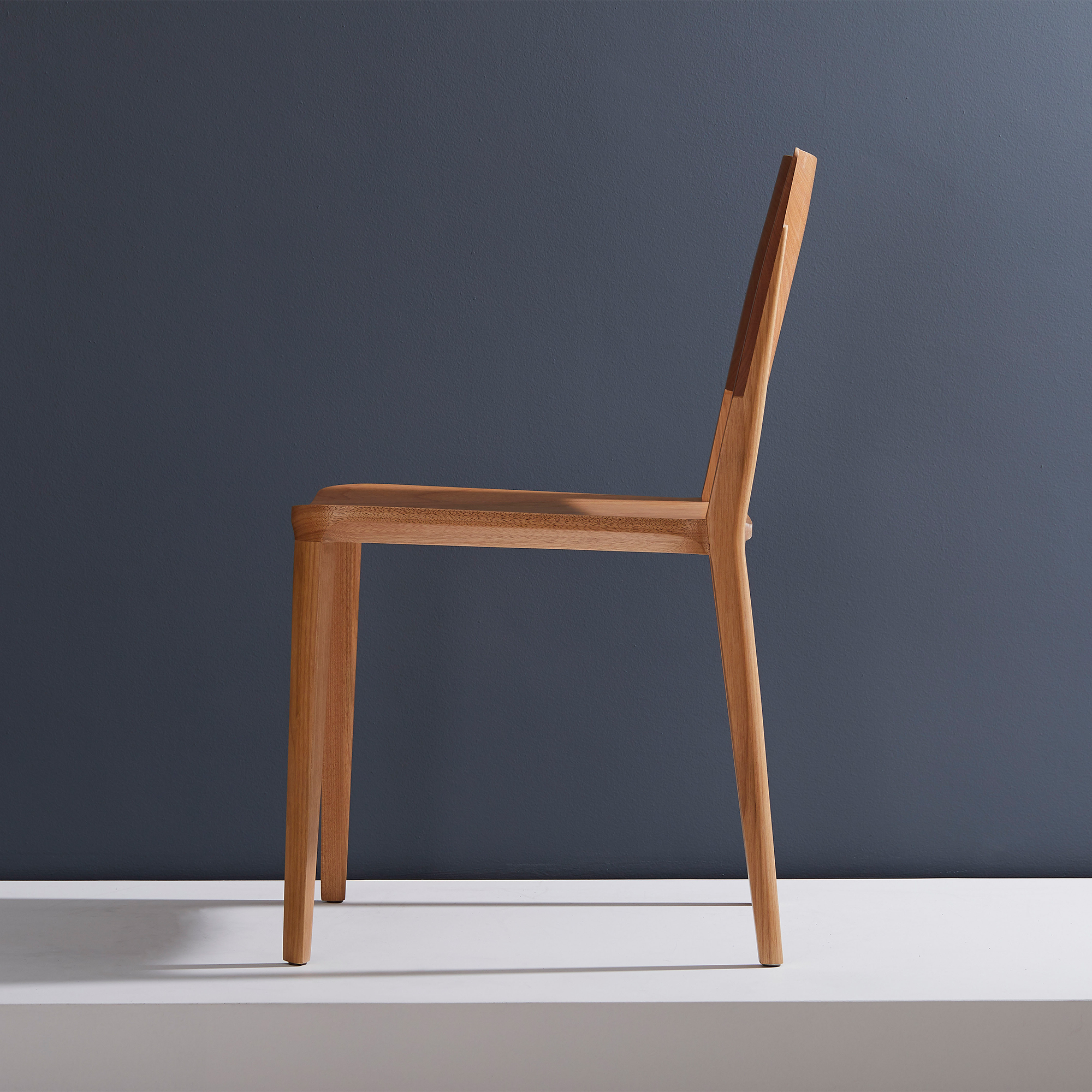 The Evo Collection reinterprets wood tradition, combining the precision of 5-axis CNC machining with meticulous hand-finishing. The armless chair in the collection stands out for its elegance of striking lines, offering a new perspective on classic wooden seats. Ideal for those who value both aesthetic and structural durability, this chair features an innovative design that optimizes the use of materials, ensuring a lasting legacy of sophistication and precision.