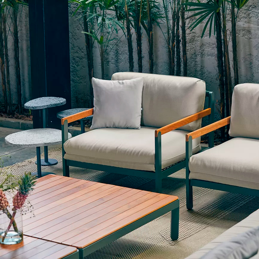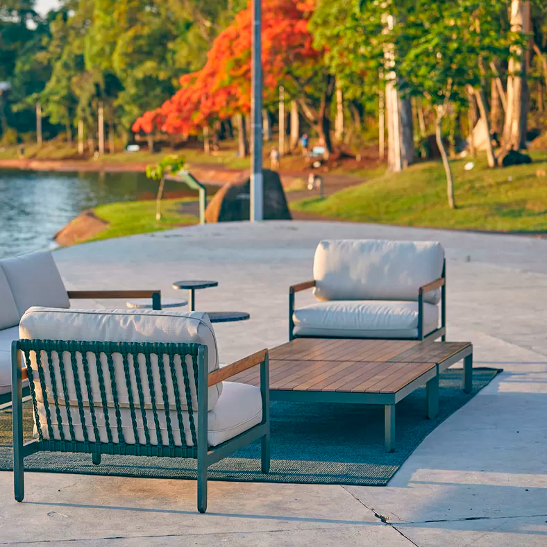 Inspired by the simplicity of rural fences, the Fence Collection includes an outdoor armchair with sophisticated design. Combining military-grade aluminum and solid wood, enhanced by nautical rope, the armchair offers a balance between minimalism and functional robustness. With broad customization options, the armchair harmoniously integrates into various outdoor spaces, ensuring a legacy of enduring comfort and refinement.