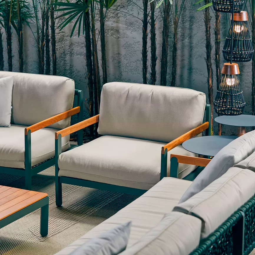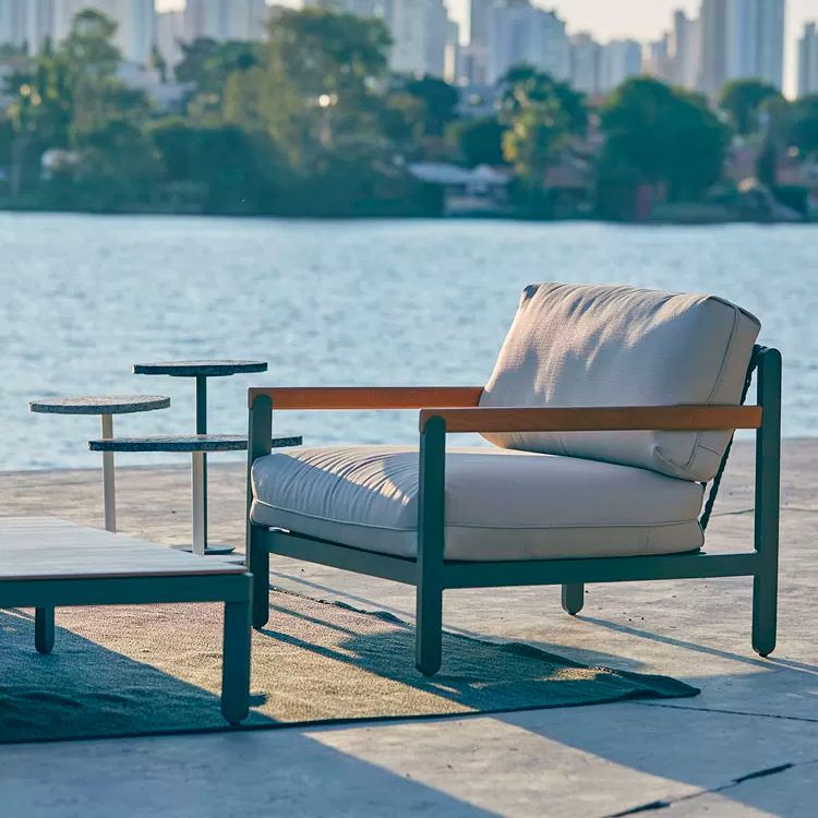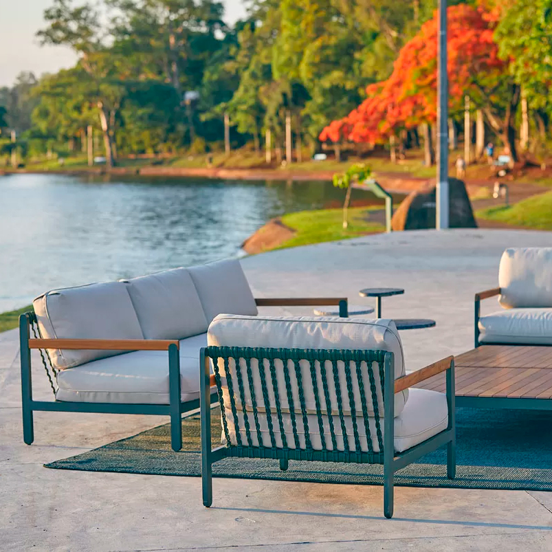 Inspired by the simplicity of rural fences, the Fence Collection includes an outdoor armchair with sophisticated design. Combining military-grade aluminum and solid wood, enhanced by nautical rope, the armchair offers a balance between minimalism and functional robustness. With broad customization options, the armchair harmoniously integrates into various outdoor spaces, ensuring a legacy of enduring comfort and refinement.
