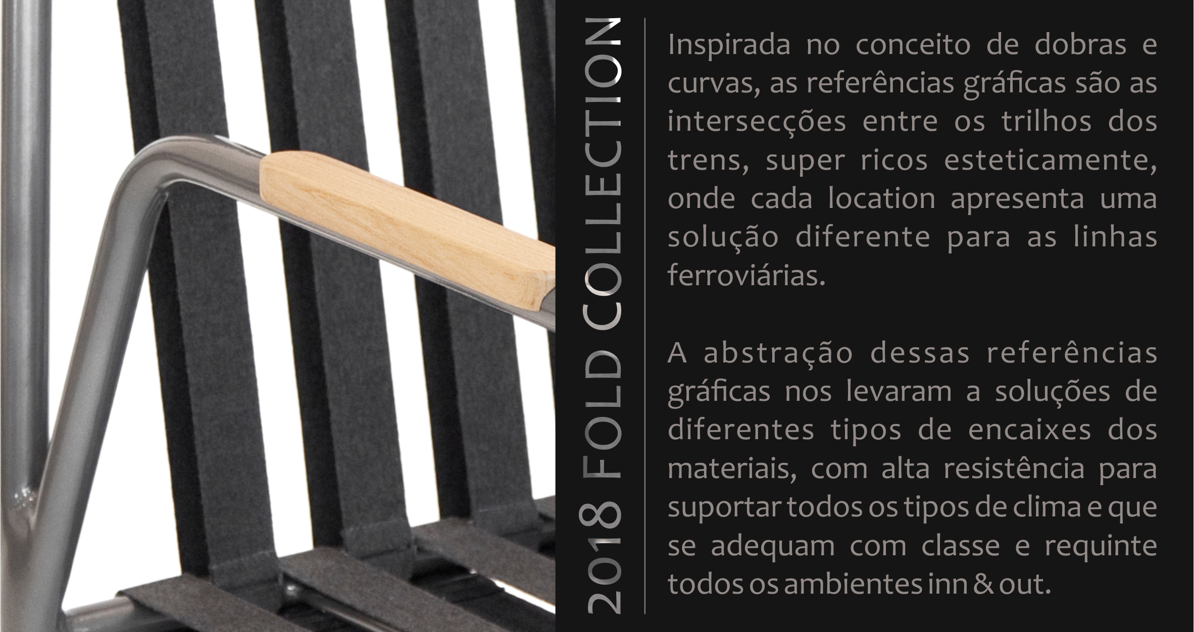 Discover the Fold Collection, inspired by the complexity of folds and curves of train tracks. Its robust metal structure with high resistance, detailed in wood and dynamic upholstery, is perfect for both indoor and outdoor environments. Weather and time-resistant, the Fold combines durability with a unique design, distinguished by meticulously machined feet that reflect our attention to detail.