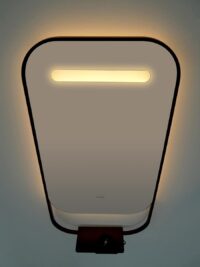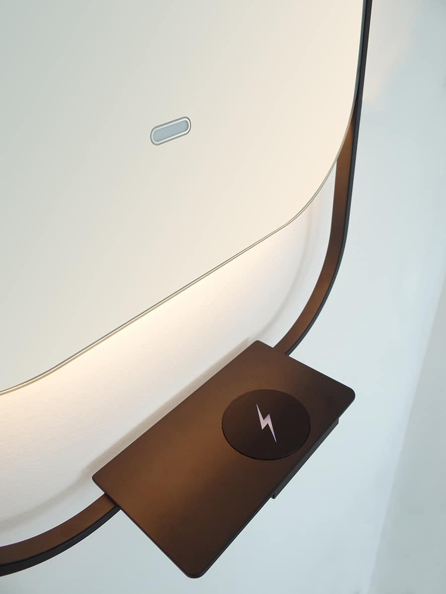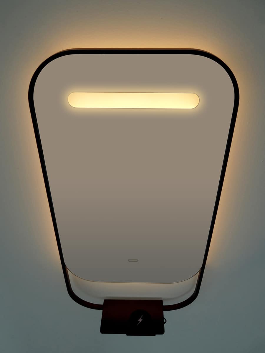 Shelf mirror with 360° lighting , Illuminated ON/OFF touch sensor , 5mm mirror thickness , Safety film backing, Black aluminum frame with integrated shelf, LED temperature color 4000K , 220V, CE, IP44Espelho de prateleira com iluminação de 360 °, sensor de toque ON / OFF iluminado, espessura de espelho de 5 mm, fundo de filme de segurança, moldura de alumínio preto com prateleira integrada, LED de cor de temperatura 4000K, 220V, CE, IP44