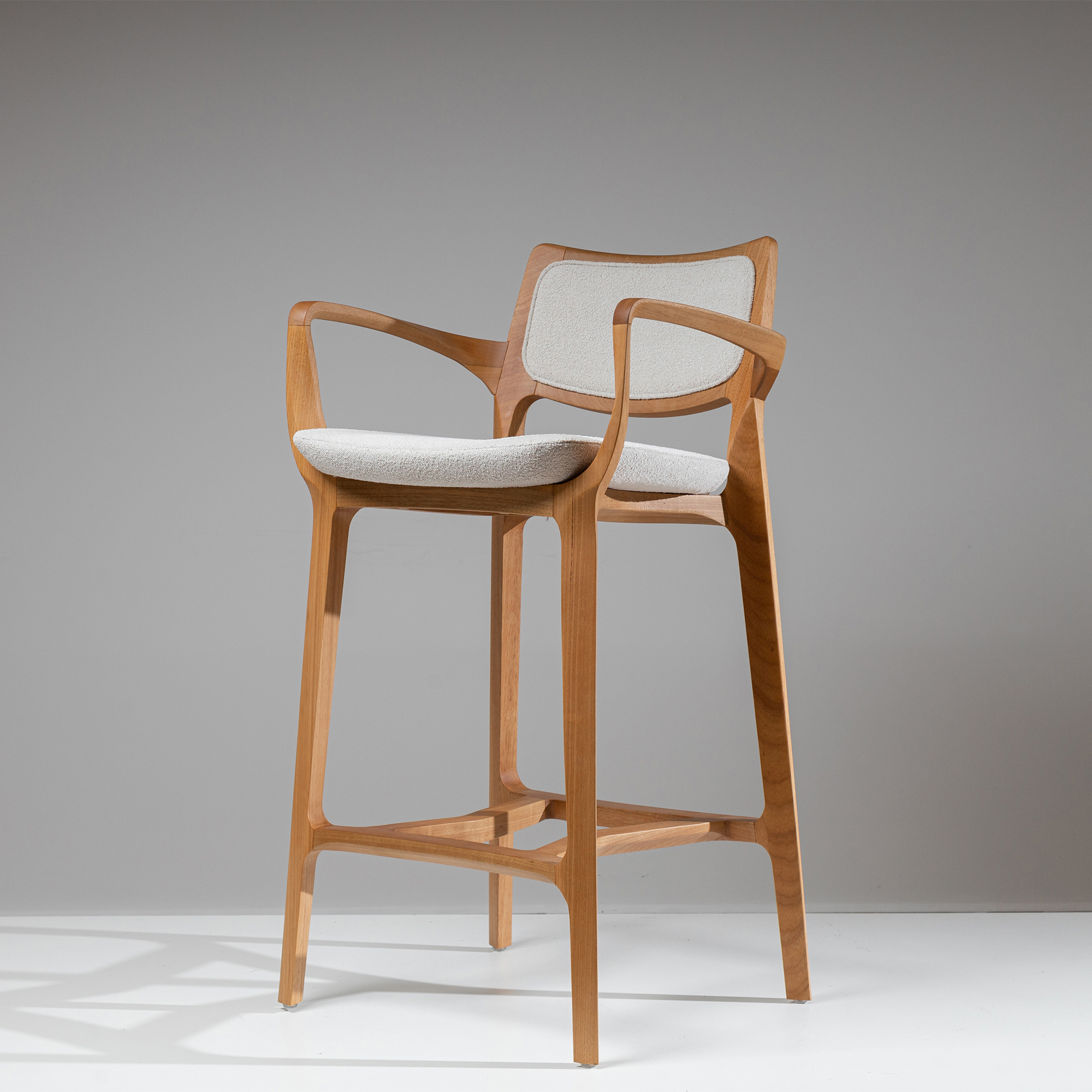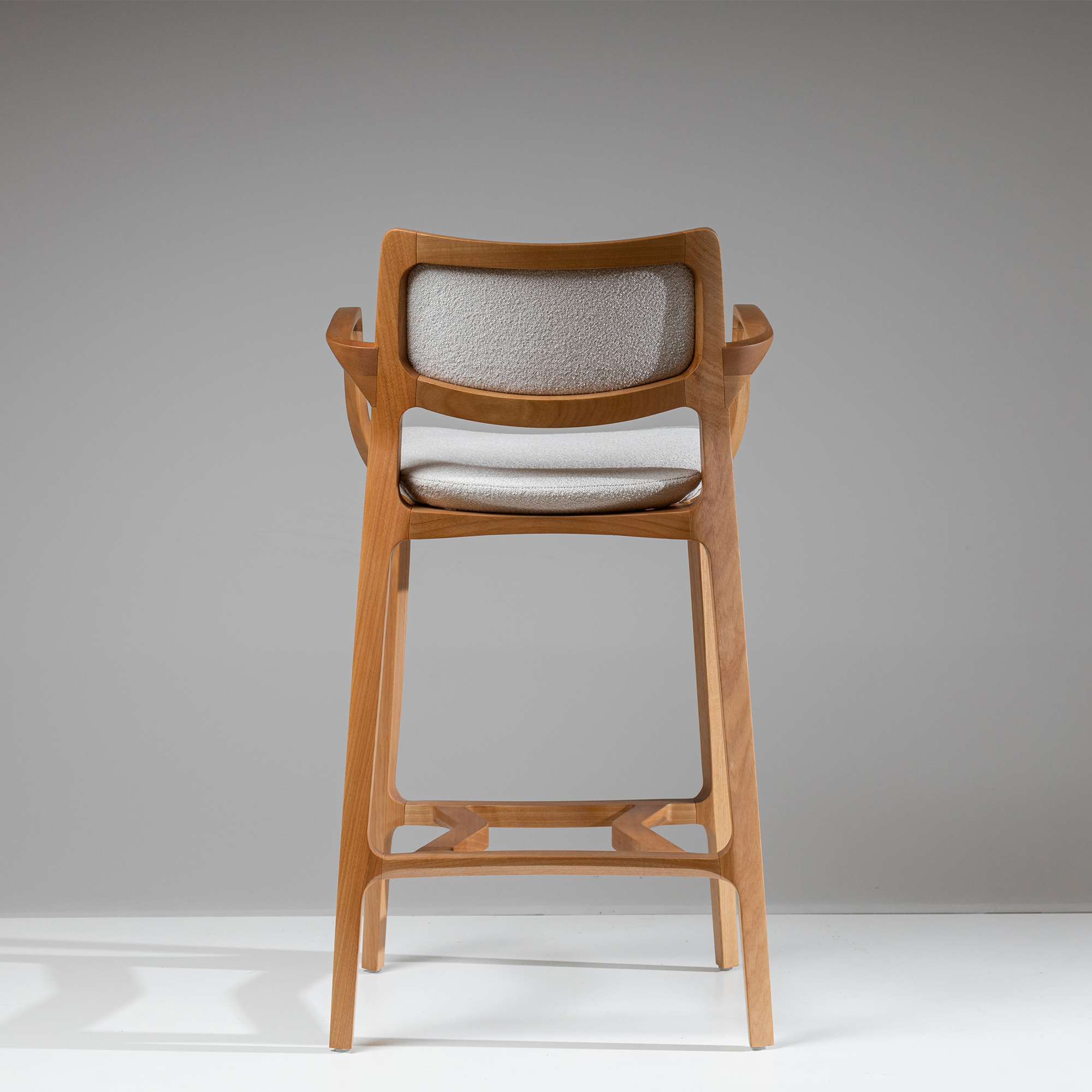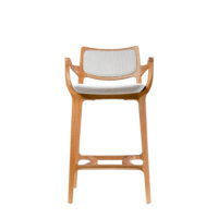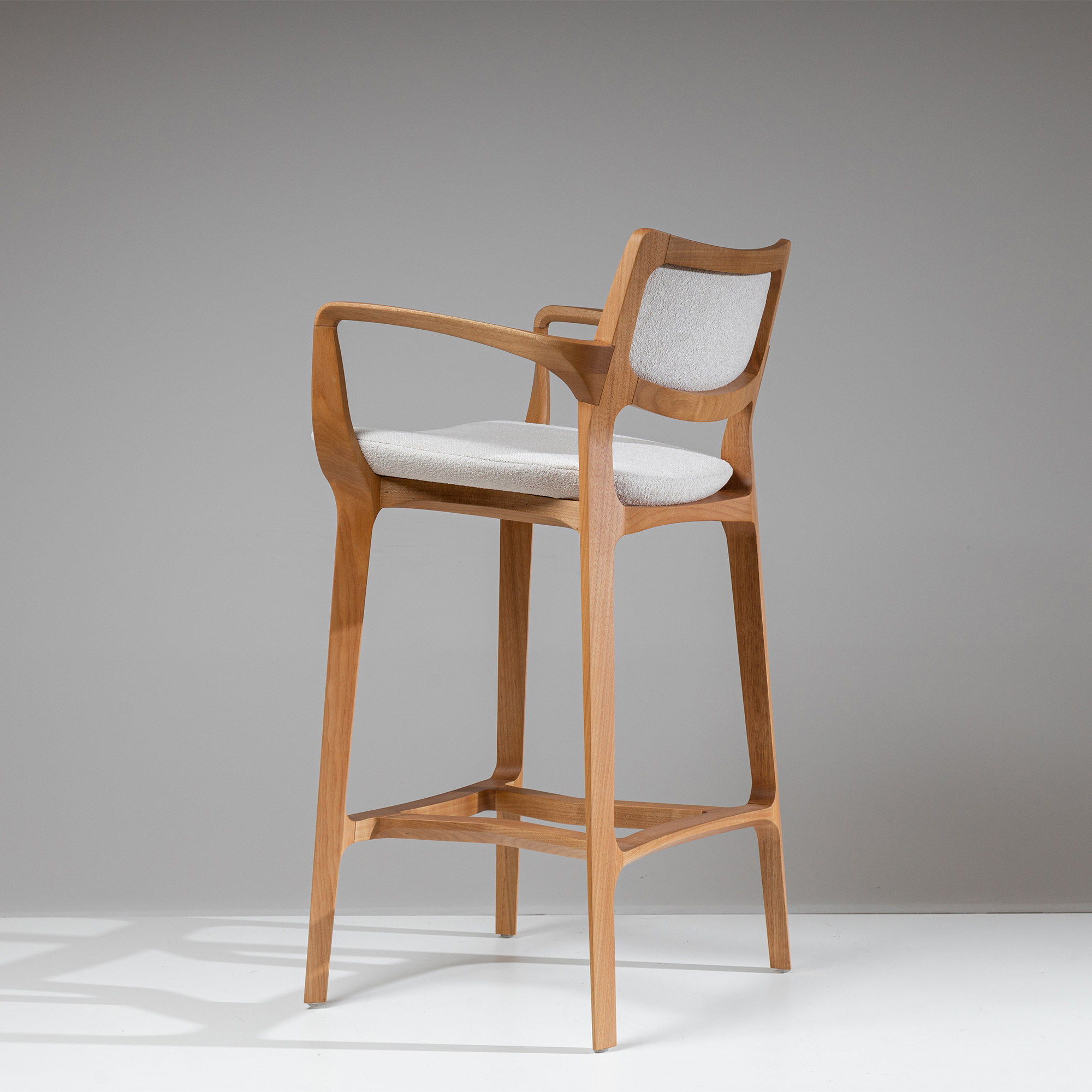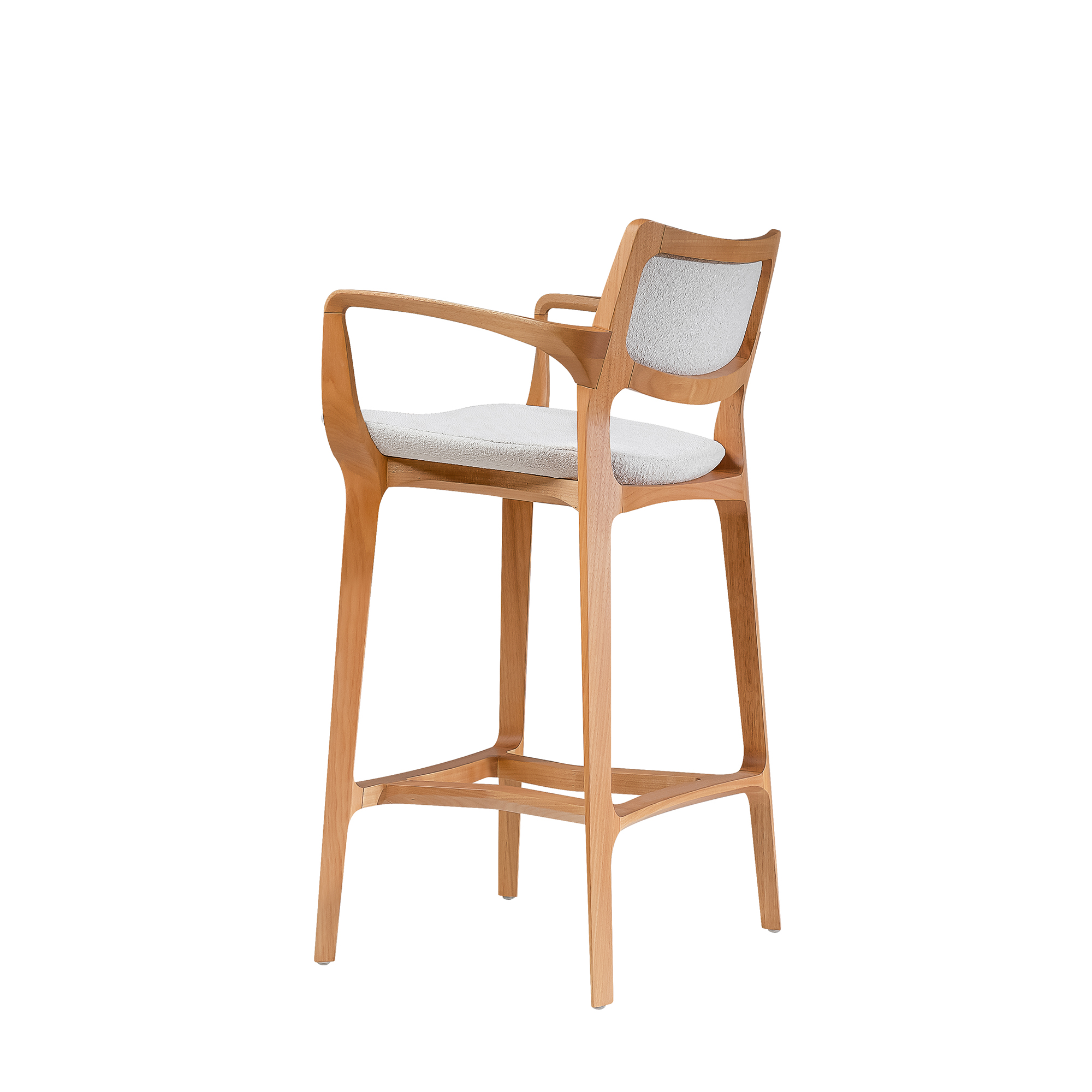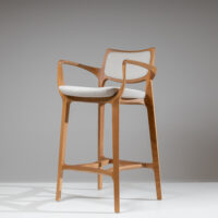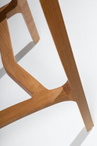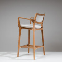 The Aurora Stool is sculpted from whole blocks of solid wood, precisely worked using a multi-axis rotation technique that results in twists and turns in its geometry. Its open arms, with an elegant curve, invite good times. A piece that combines absolute balance and timeless durability.