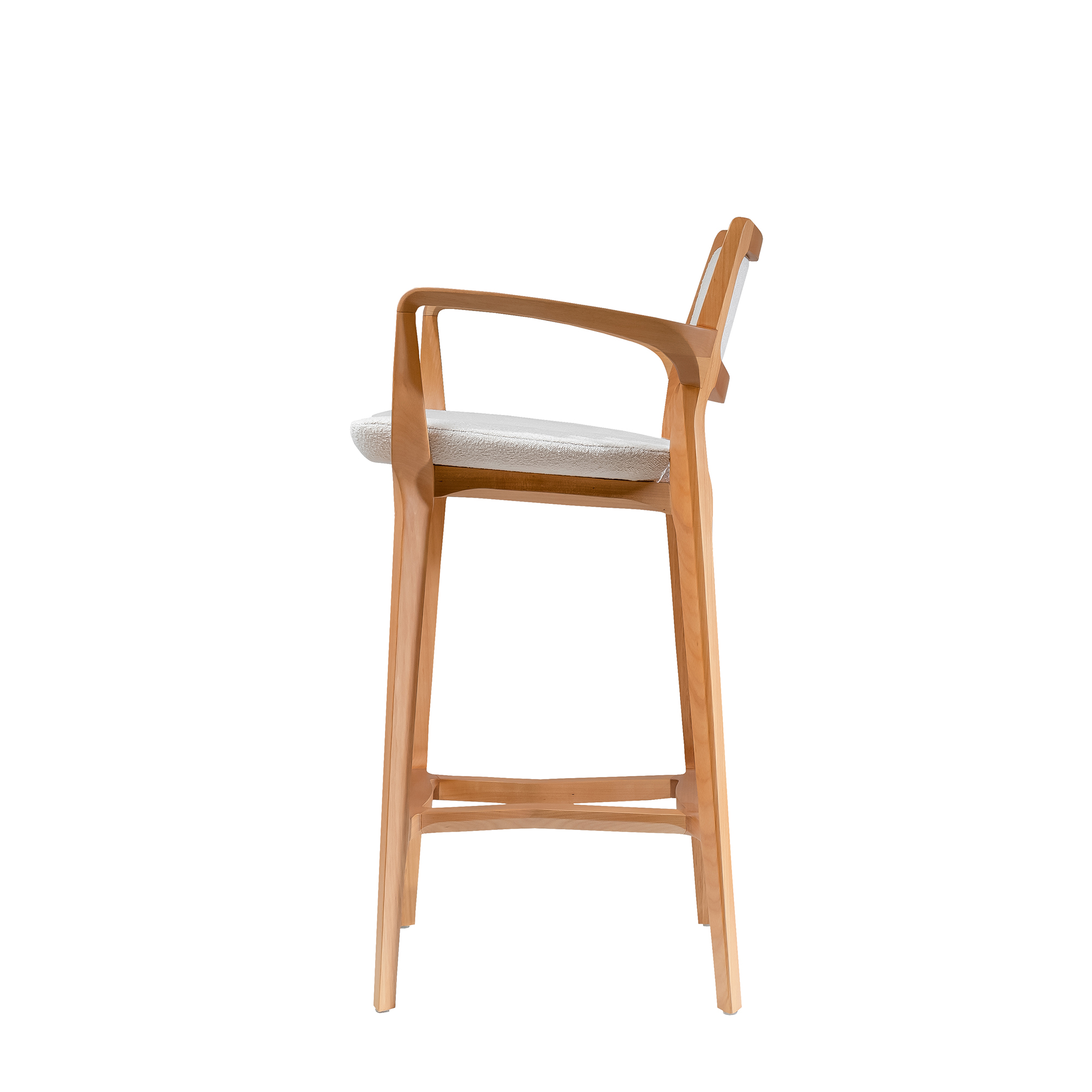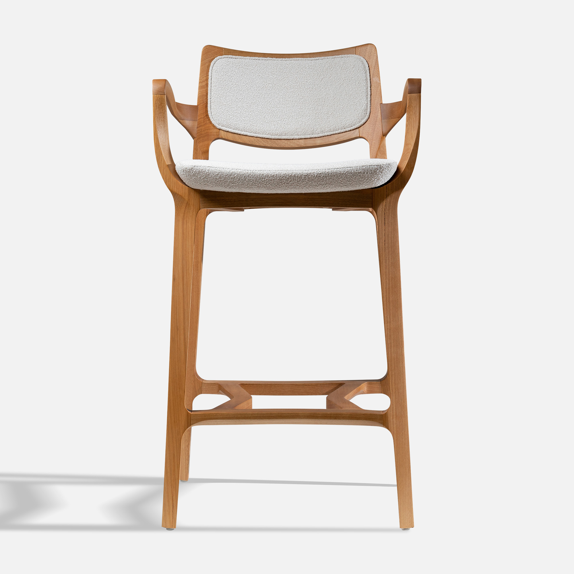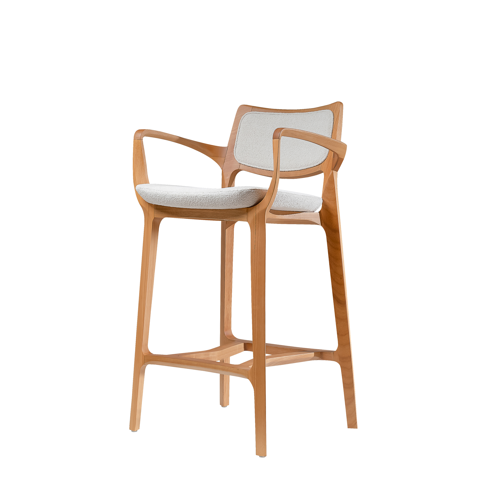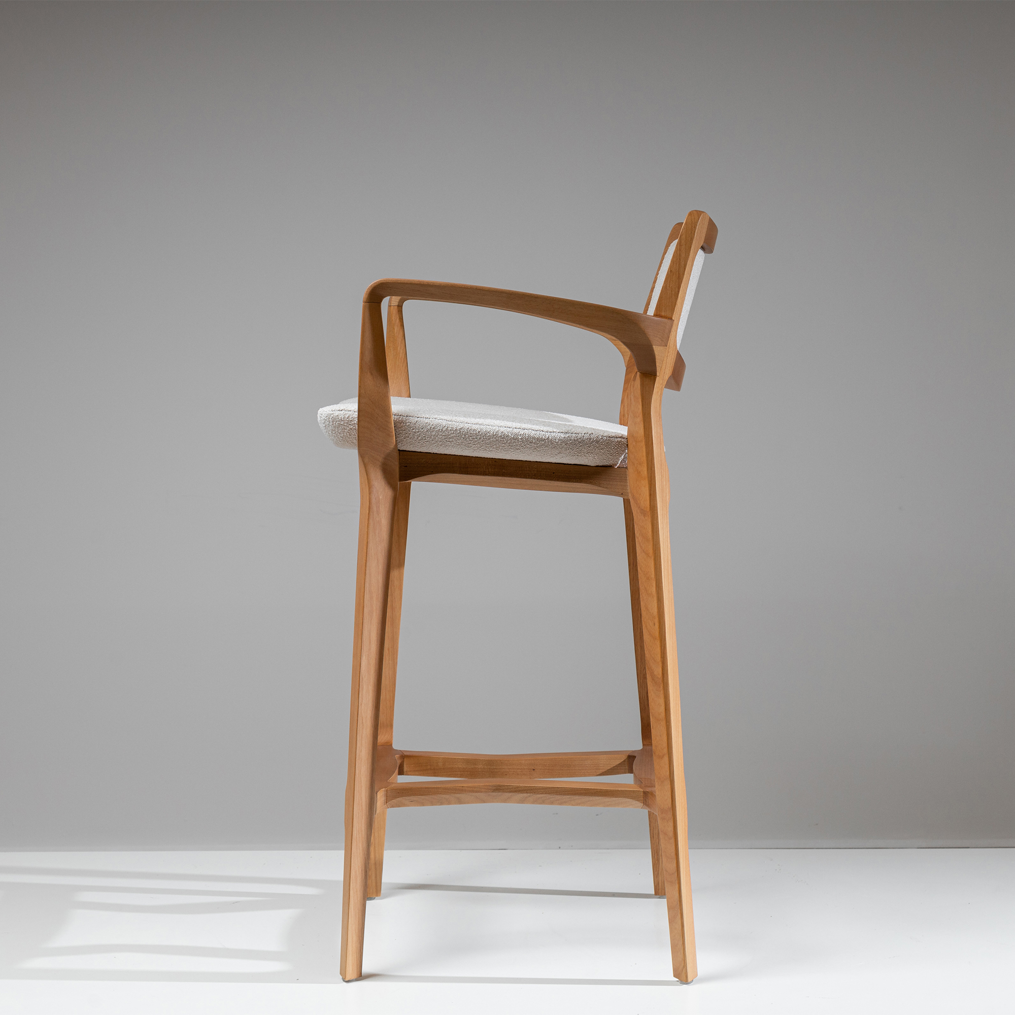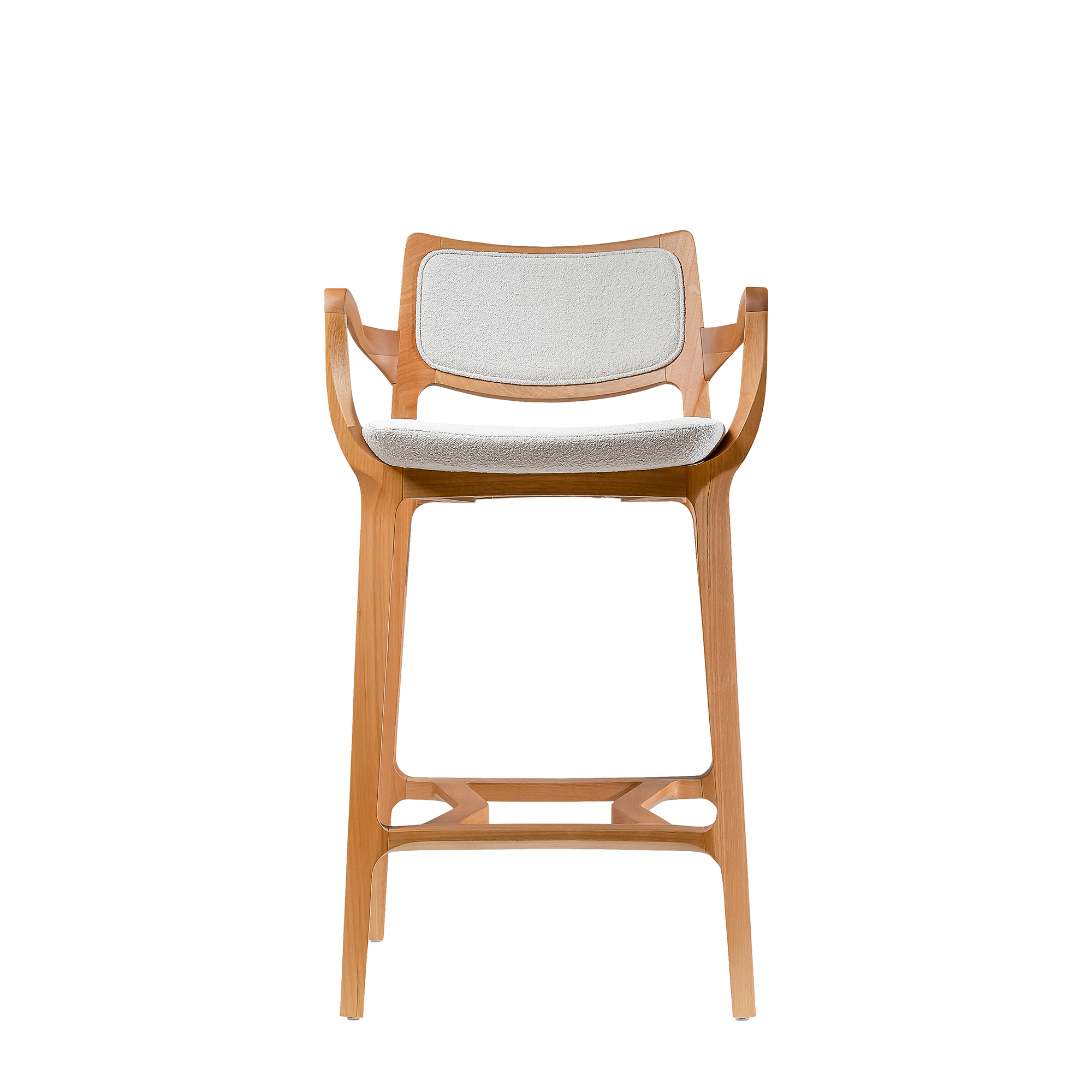 The Aurora Stool is sculpted from whole blocks of solid wood, precisely worked using a multi-axis rotation technique that results in twists and turns in its geometry. Its open arms, with an elegant curve, invite good times. A piece that combines absolute balance and timeless durability.