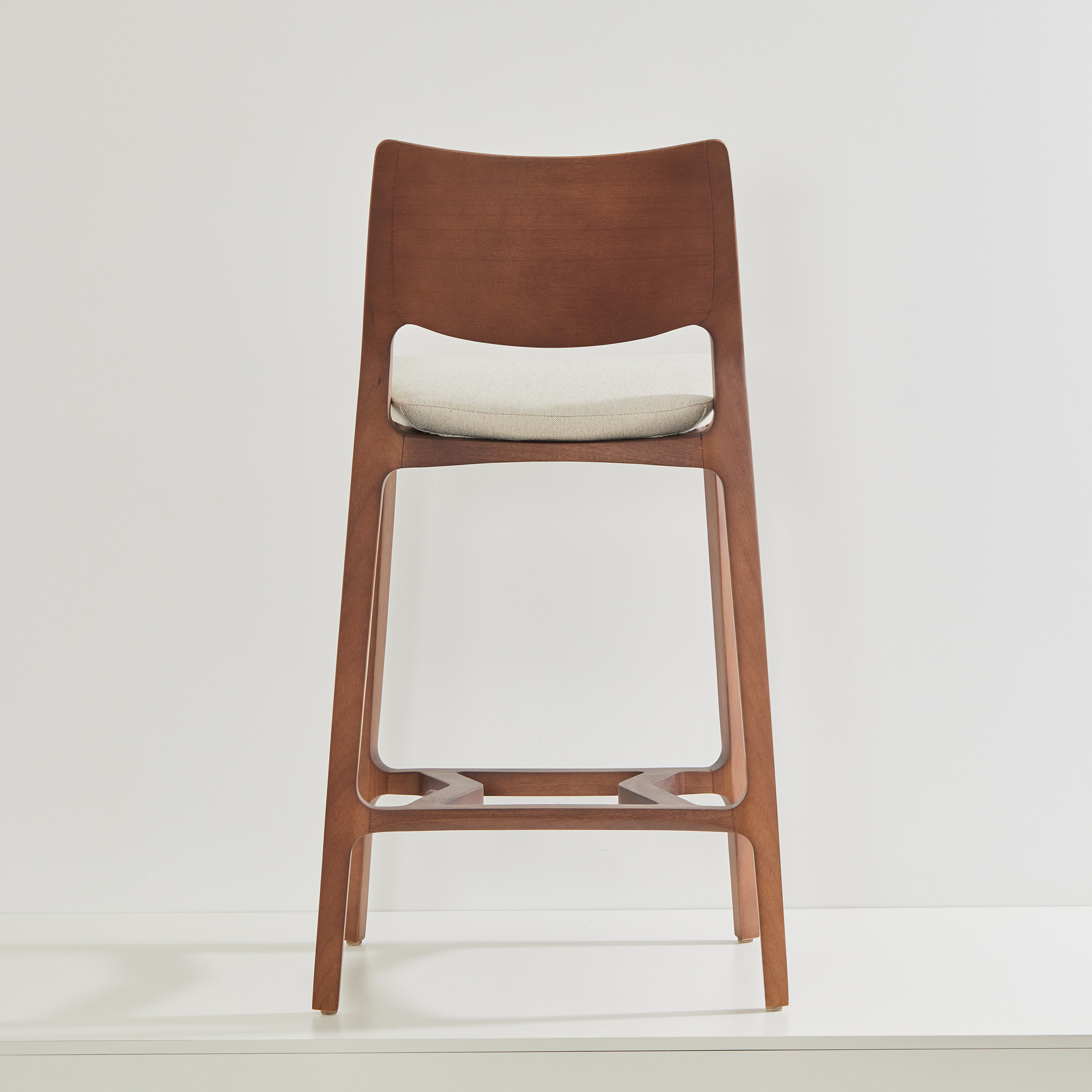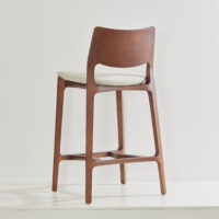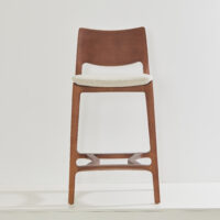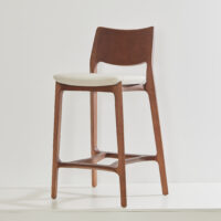 The Aurora Stool is meticulously sculpted from whole blocks of solid wood, using a multi-axis rotation technique. The backrest, with its striking curvature, is available in solid wood or cane, providing versatility and style. A perfectly balanced piece, resistant to time.