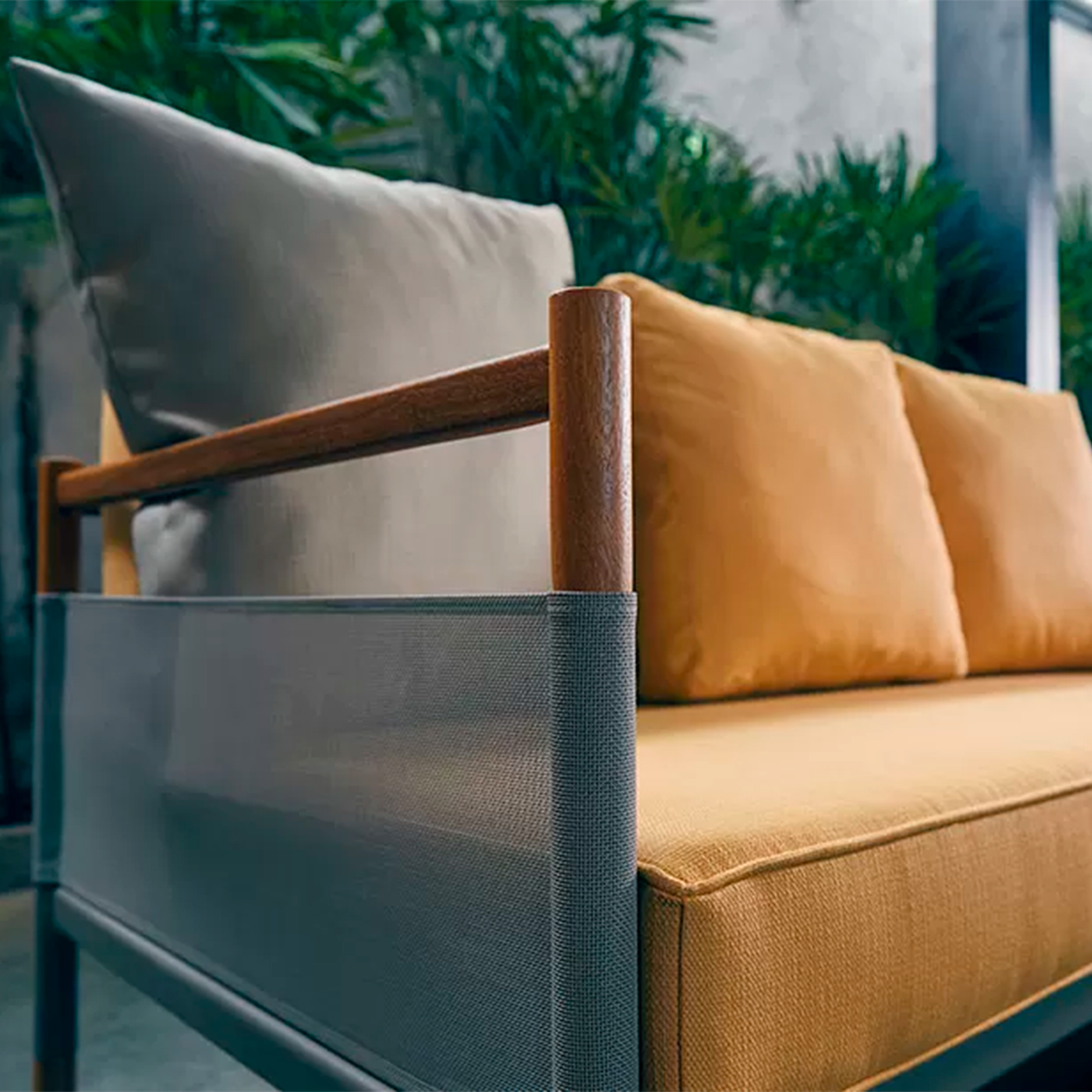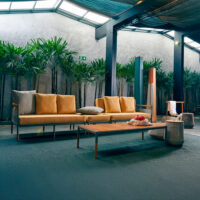 The Skyfolding Sofa, from the award-winning Salão Design collection, captures the allure of Asian scaffolding. This creation blends outdoor nets with wood and metal structures, showcasing a minimalist design ideal for outdoor settings. Like the entire series, it encourages contemplation and reflection, merging retro and hi-tech elements in a dialogue about past, present, and future. Designed to enrich modern life, the sofa fosters a Zen and timeless presence.