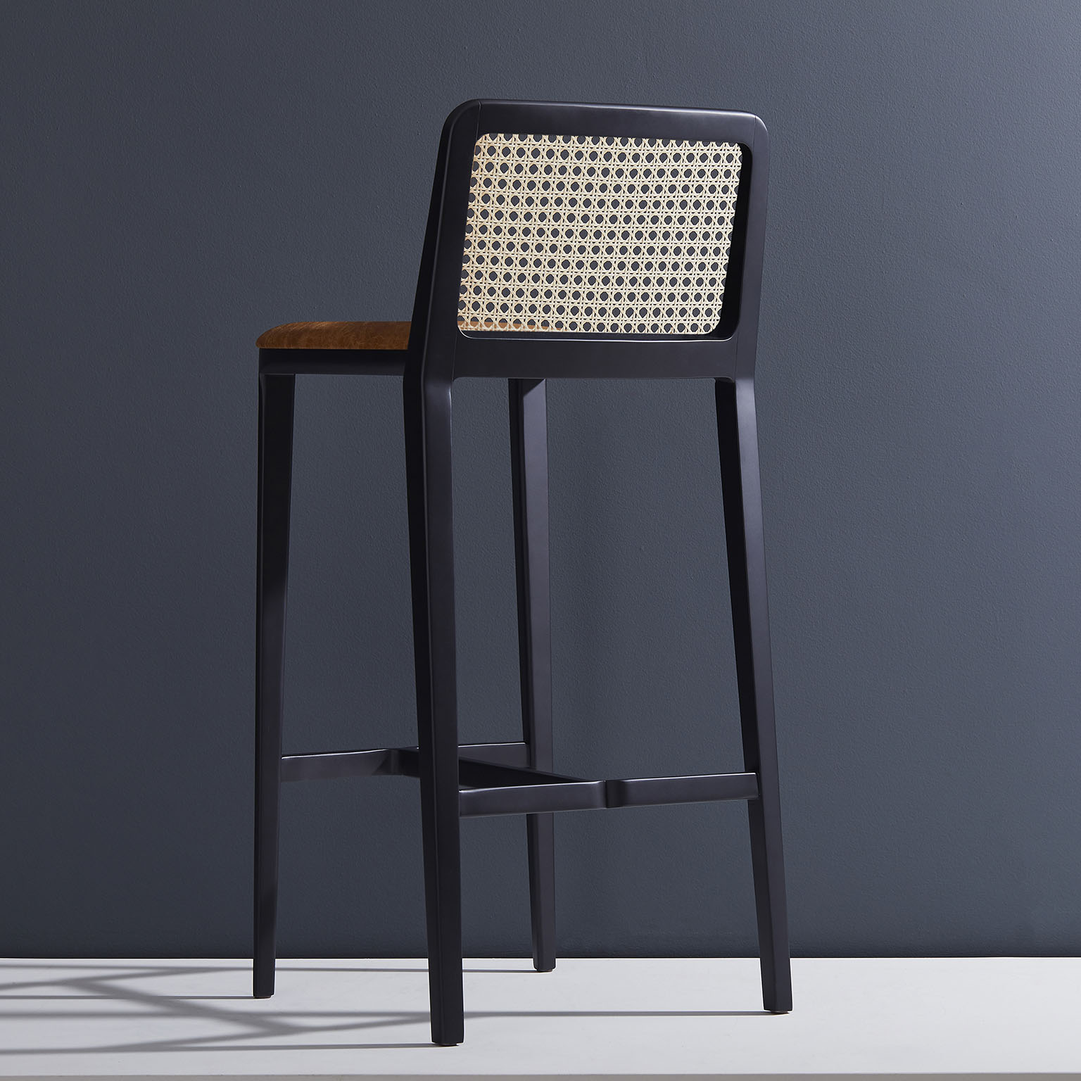 The Wing Stool is a tribute to the precise and robust design of the B-52 airplane, where Leonardo Da Vinci’s golden ratio harmonizes with the solidity of noble wood. Offered with a solid backrest for more visual weight or a cane version for a touch of lightness, each stool is marked by an essential aesthetic and harmonious transitions. With a mixed approach between precision automation and artisan care, each variation offers durability and ultimate comfort, ideal for enriching every moment of your day.